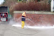 Und dann wäre da noch Graffiti, welches oft in Form von Hieroglyphen an öffentliche Wände gesprüht wird. Auch hier greifen wir zu umweltverträglichen Mitteln, um sie möglichst schnell wieder zu entfernen.