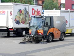 Eine Kleinkehrmaschine sorgt ganzjährlich (ausgenommen bei Schnee und Frost) dafür, dass enge Straßen, Wege, Durchgänge und Parkbuchten regelmäßig gereinigt werden.