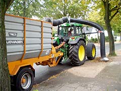 Im Herbst, wenn der Laubfall beginnt, wird zusätzlich ein Laubsauger eingesetzt, der das Laub von den über 7.000 Straßenbäumen aufsaugt. Wir bitten daher um Ihr Verständnis, dass dies nicht überall gleichzeitig geschehen kann. Das Gesamtaufkommen an Laub beträgt jährlich über 1.200 Kubikmeter