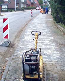 Danach werden versackte Pflastersteine, hochgedrückte Platten oder Asphaltlöcher möglichst zeitnah beseitigt.