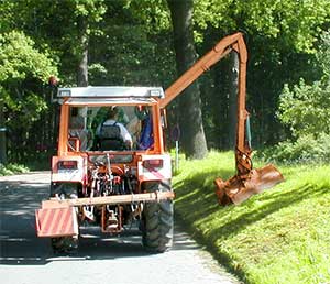 Ein Spezialfahrzeug sorgt dafür, dass wassergebundene Wege und Plätze in einem befahrbaren Zustand bleiben. Im Sommer werden mit einem Mähausleger Banketten und Seitenstreifen gemüht, um auch hier den Verkehrsteilnehmern den überblick zu gewährleisten.